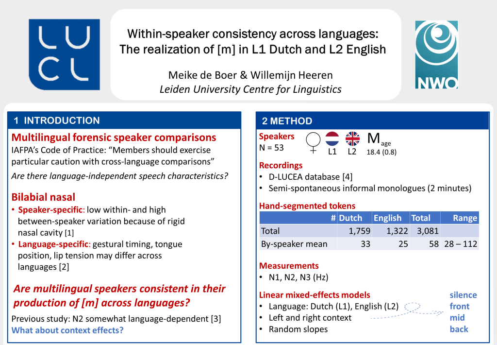 IAFPA (22-25 augustus 2021), International Association for Forensic Phonetics and Acoustics, online.